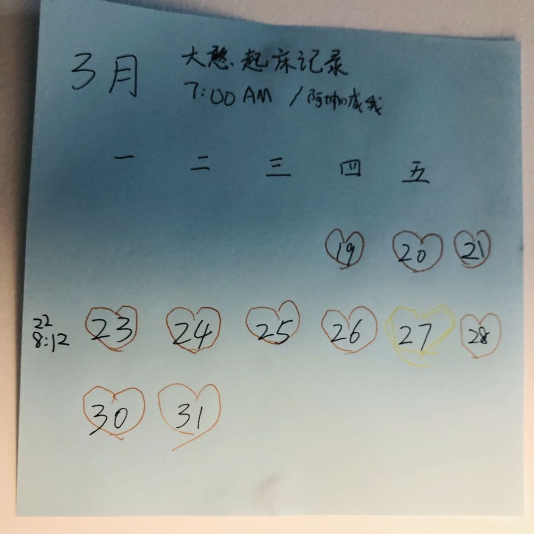 3月的好消息是,每天都有坚持早起哦。