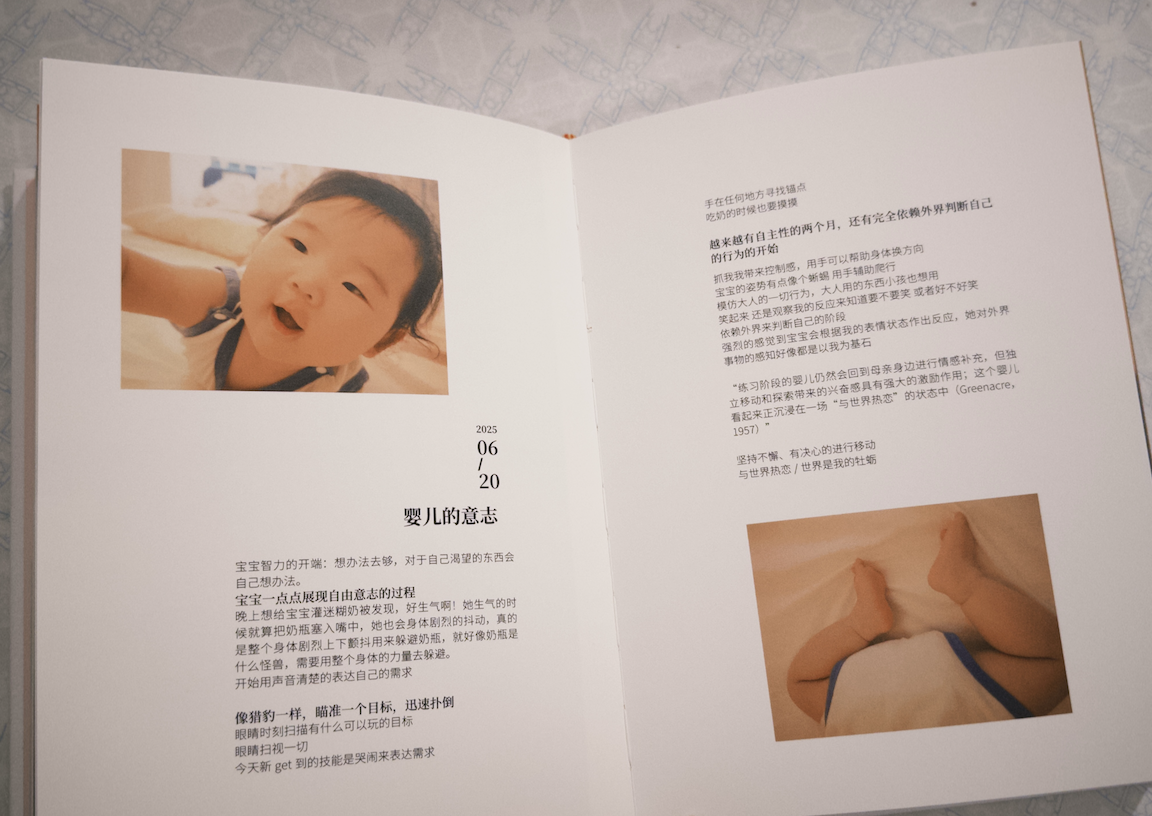 给lunar看,她说:“感觉这本相册会让她日后每一天都会记起自己是一个拥有很多很多爱的小孩”。